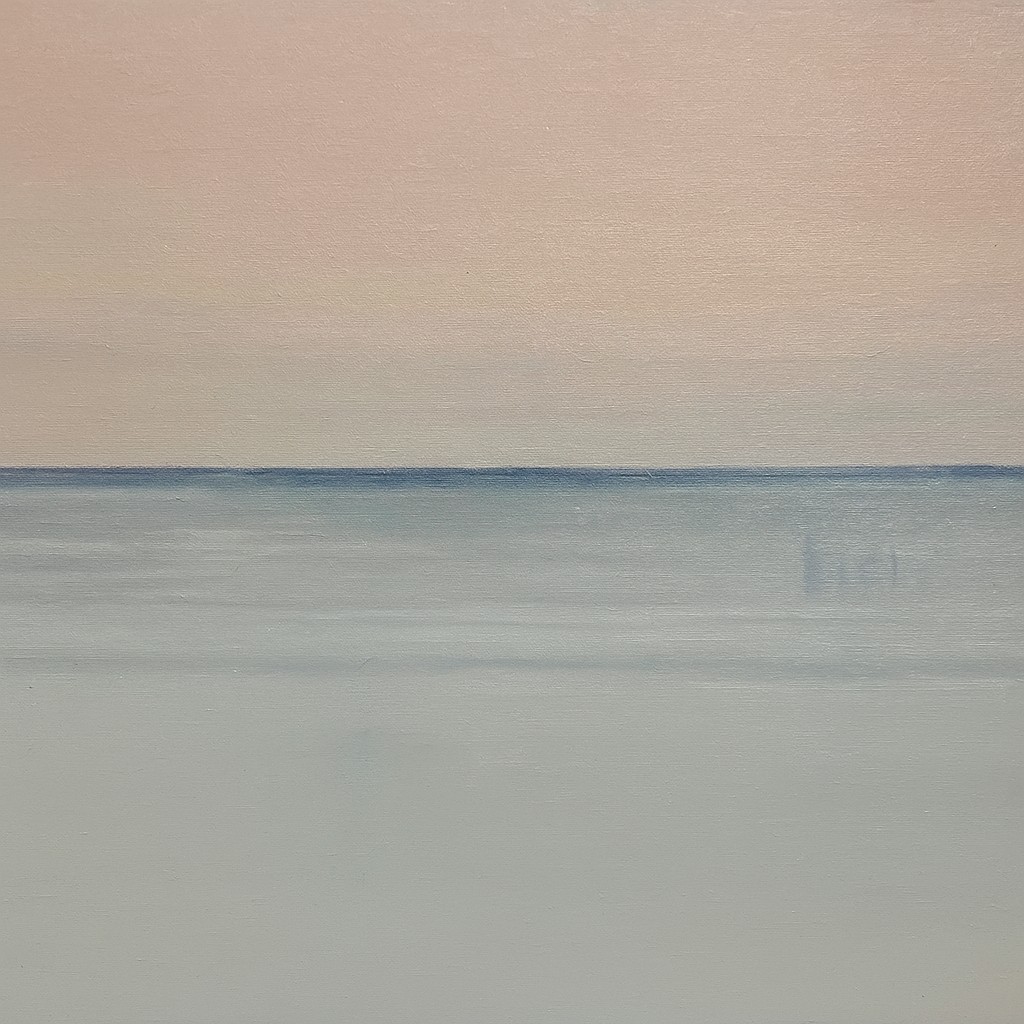 Blush Horizon is an ethereal coastal painting that evokes quiet mornings by the sea. The soft blush sky hovers above a glassy expanse of pale blue, inviting rest and reflection. Ideal for bedrooms or reading nooks, this minimalist piece brings calm energy to any space.